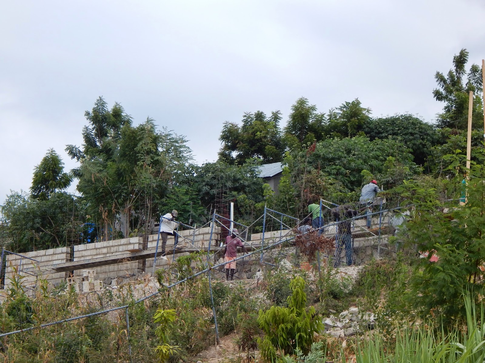Everyone knows with Len’s background as a builder that we are always in the middle of a construction type undertaking! We have been working on acquiring a piece of property next to us for some time now, with the ultimate goal of putting in a soccer field and perhaps even a heliport! Last week, we got one piece of that land, and work started on extending the security wall across the southern property line. It’s been incredible to see how quickly our workers have been able to get this wall up! The retaining wall was first, and the blocks are going up now. Our workers carry these blocks up one-by-one (I’ve seen some of the guys put one on their head so they can carry more in their hands!) The amount of work this requires is incredible and our guys are truly some of the most hardworking guys I know!